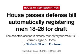 Nos Estados Unidos, a Casa dos Representantes aprovou o recenseamento automático dos mancebos de 18 a 26 anos (incluindo mulheres).